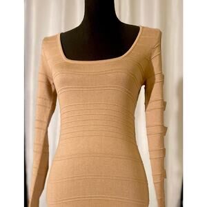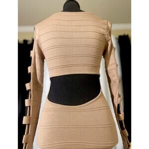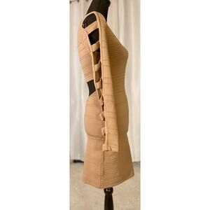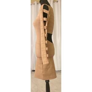 New Solid Bodycon Cage Sleeves and Cutout Dress Tan Size Small