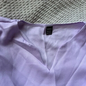 New Solid Lightweight Notched Neck Blouse Size Medium Beautiful Lavender Color