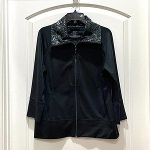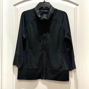 New Soma Jacket Large Black 3/4 Sleeve Stretch Knit Zip Top