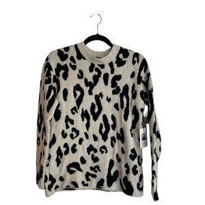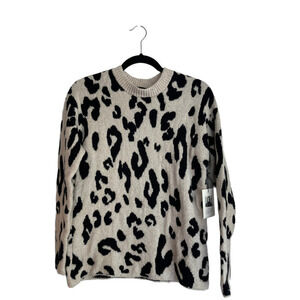 New Something Navy Leopard Crewneck Pullover Women's Size XS