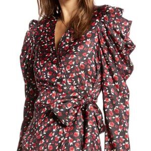 New Something Navy Wrap Ditsy Floral Minidress XXS NWT