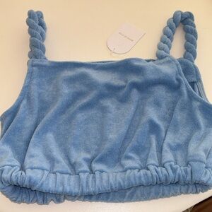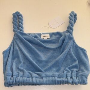 New Song of Style Revolve blue crop top with statement braided straps. Terry fabric