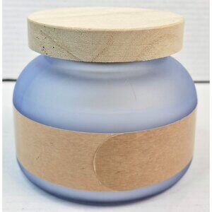 New Soothing Sea Scented Candle 15 Oz Blue Frosted Glass Wooden Lid Relaxation