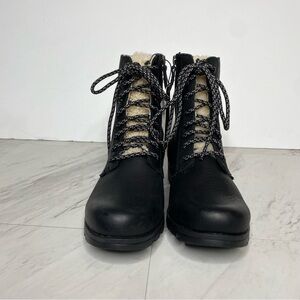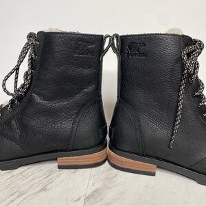 New! Sorel Emelie Black Leather Short Lace Up Boots 8