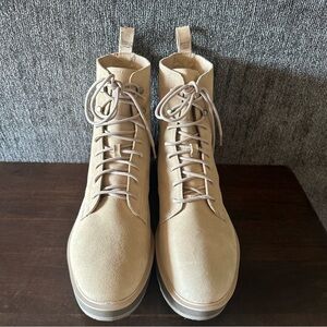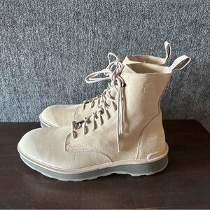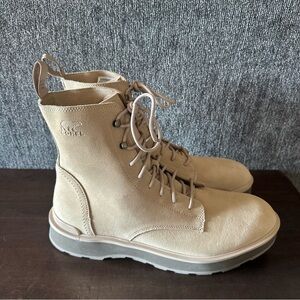 The Sorel Men's Hi-Line Lace 'Canoe' Boot in a Men's Size 13 features a waterproof design, making it perfect for outdoor activities and casual wear. With a round toe shape and lace-up closure, this beige boot is both stylish and functional. Made with a suede upper and a rubber outsole, these boots offer durability and comfort for all-day wear. Whether you're exploring nature, working in the great outdoors, or simply taking a casual walk, these Sorel boots are a practical and stylish choice for any man. Lightweight