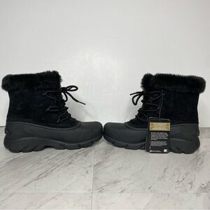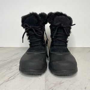 New! Sorel Snow Angel Lace Up Faux Fur Black Winter Boot 6