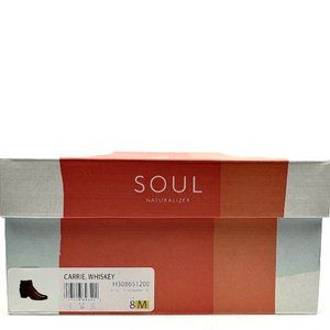 New Soul Naturalizer Carrie, Almond Toe, Block Heel, Memory Foam Ankle Bootie. Whiskey. Size 8. A spot on bootie with a biker-chic flair that offers both style & comfort.