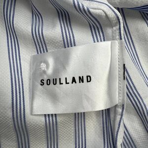 New Soulland Cornwall Men White Striped Shirt Short Sleeve Slim Button-Down US L