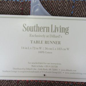 New Southern Living Table Runner 100% Cotton 14” x 72” Chevron/Plaid Brown and Multicolor Stitches