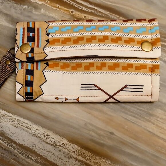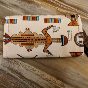 New Southwestern Clutch Wristlet Wallet Brown Cream Geometric Trifold Zip Pouch
