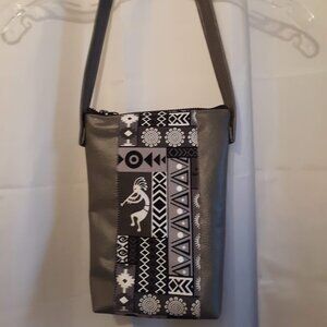 New Southwestern Kokopelli Shoulder Bag Purse Gray Faux Leather travel pouch
