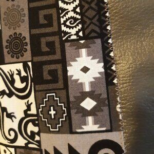 Beautiful Kokopelli southwestern theme accent fabric in gray, black and white