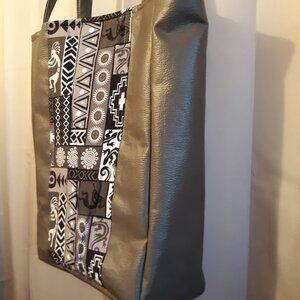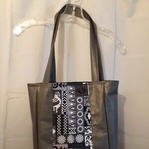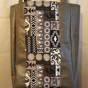 New Southwestern Kokopelli Tote Shopper shoulder Bag Gray Double handle Carryall
