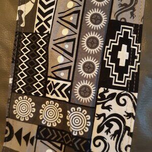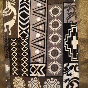 Beautiful kokopelli southwestern theme accent fabric in gray, black and white