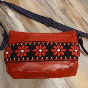 New Southwestern New Mexico style Shoulder Purse Tapestry trim Red Black Vinyl