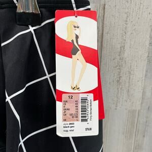 New! Spanx Flirty Skirted Bottom Black Geo Print Flattering Womens Size 12