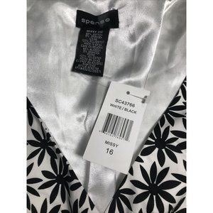 New Spense Black And White Floral Woman’s V-Neck Dress size 16 With Stretch