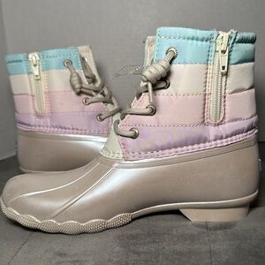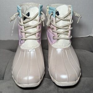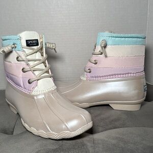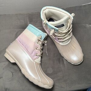 New Sperry Kid’s Saltwater Ankle Boot Duck Boot Iridescent Pastel Size 3 & 6