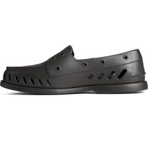 The Sperry STS24802 is a boat shoe that is part of the Sperry X Beams Plus Collection, which reinterprets American casual wear style. It is made from 100% rubber and features a lightweight EVA midsole, drainage gills on the waterline, and breathable portholes on the topside.