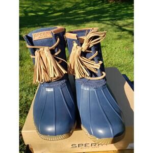 New Sperry Saltwater Tassel Corduroy Booties 6.5 Navy Blue. New in box. See photos for condition and visual description. Will come as is as shown. If you have any questions please ask 😊