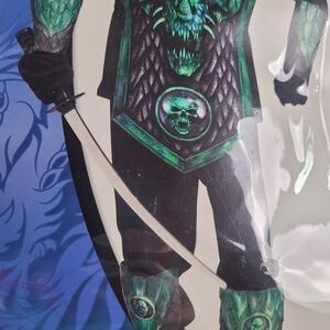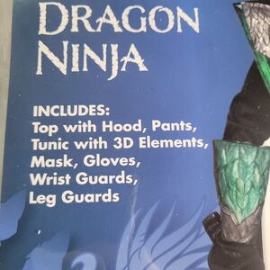New in package Spirit Deluxe Dragon Ninja Child's Halloween Costume. Size 4-6. Includes top with hood, pants, tunic with 3D elements, mask, gloves, wrist and leg guards.