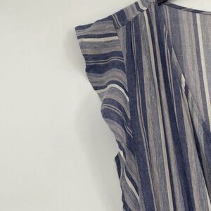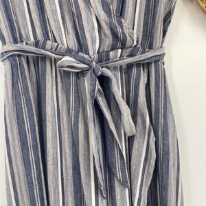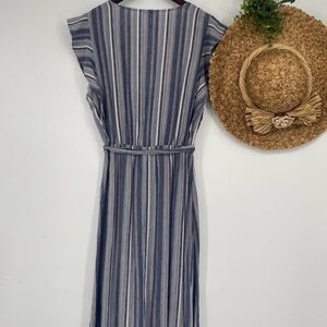 New Splendid Chambray Multi Stripe Tulip Sleeve Wrap Dress Size Small