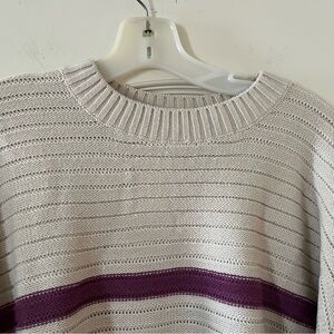 New! Splendid Designer Striped Cream and Purple Women's Acrylic Sweater