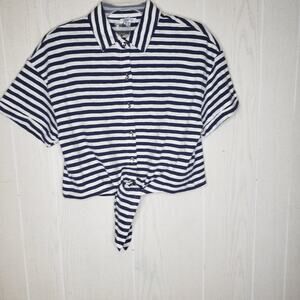 New Splendid navy white nautical shirt tie front cropped size xSmall