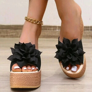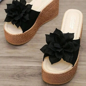 New Spring & Summer Black Platform Wedge Sandals For Women With Thick Sole