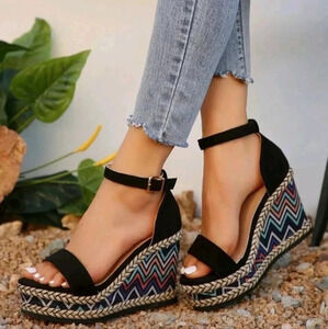 New Spring Summer Fashion Women Chunky Wedge Platform Sandals With Bare Straps