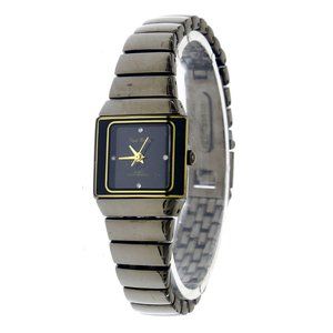 New Square Shiny Metal Black Bracelet & Dial Watch