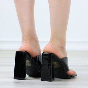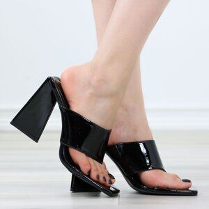 New Squared Open Toe Thong Flip Flop Stiletto Heel Slide Sandal Mules Patent