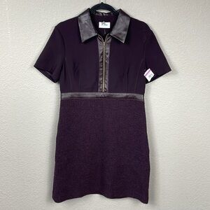 New St John Collection Mixed Media Shirt Dress Tweed Leather Quiet Luxury Sz 8
