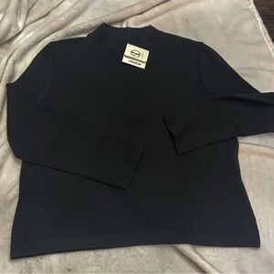 New! St. John Knits Black Mock Neck Long Sleeve Pullover Top NWT 16071