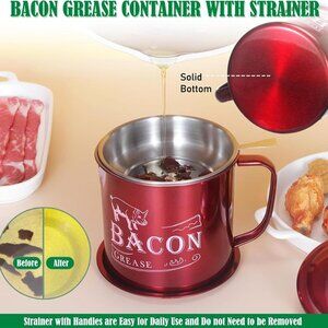 FILTERS & STORES EFFICIENTLY: Extend the life of your delicious bacon grease by pouring the melted bacon fat through the strainer, keeping the fitted lid on your container, and storing it in the refrigerator. Can be stored right next to your stove or in your refrigerator. Can be hand-cleaned or in your dishwasher for thorough cleaning