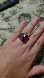 This men's ring features a bold red gemstone set in an intricately designed silver band, perfect for making a statement.