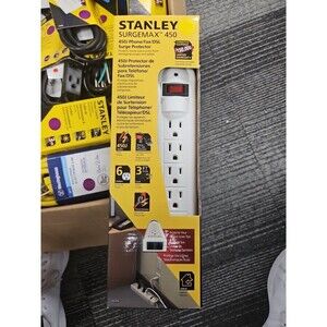 New Stanley 33216 6 Outlet White Phone & Fax Surge Suppressor