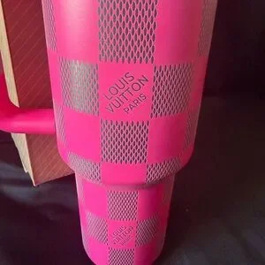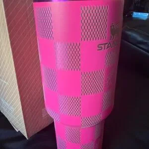 New Stanley 40oz Laser LEngravedV Hot Pink Checkered Tumbler with Straw