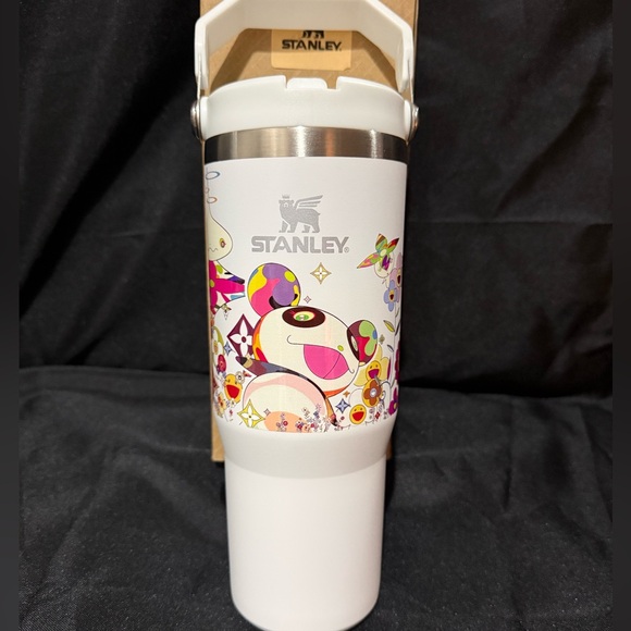 Stanley tumbler featuring a white base and multicolor accents. Ideal for daily hydration.