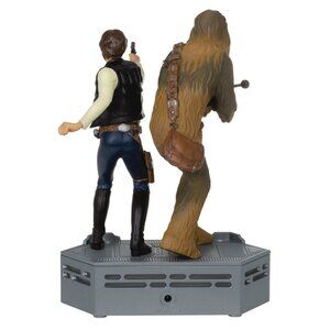 Brand new in box and never opened, hard-to-find premium quality Hallmark Keepsake Christmas ornament only made in 2022 and now very rare, titled "Han Solo and Chewbacca" it depicts the character played by Harrison Ford in Star Wars: A New Hope with his blaster and his Wookie copilot armed with a bowcaster, and when attached to a Keepsake Power Cord (sold separately) it can communicate with other ornaments in the series for an amazingly interactive sound and light performance.