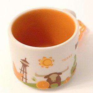 New Starbucks Texas Coffee Mini Mug Ornament is 2 Oz. and from 2016. Images include cactus, oil rigs, steer, sun and so much more. Measures 2 inches high and 3 inches wide. Box is included.