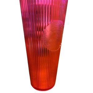 New Starbucks Tumbler Cup Pleated Magenta 24oz Summer Pink Iced Coffee