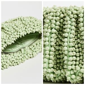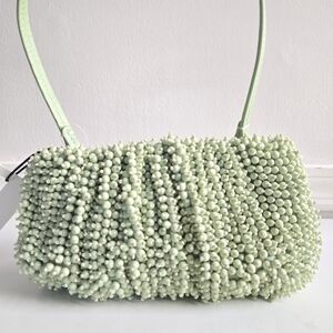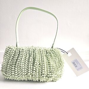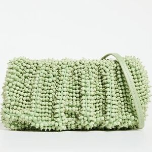 New With Tag Staud Beaded Bean Convertible Matcha Shoulder Handbag
