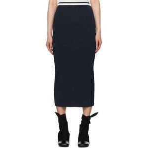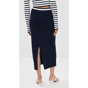 StaudNavy & White Karina Midi SkirtViscose- and nylon-blend ribbed jersey skirt.· Jacquard stripe at elasticized waistband· Slit at back hemSupplier color: Navy/White80% viscose, 20% nylon.Made in China.