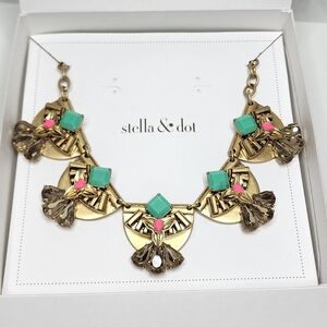 New Stella & Dot Devina Statement Necklace Gold Pink Jade Collier