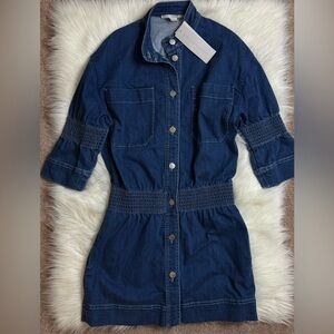 New Stella McCartney Ready to Wear Runway Denim Cinched Sleeve and Waist Top