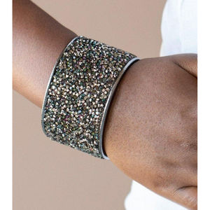 New Stellar Radiance Multi Iridescent and Hematite Gem Rhinestone Cuff Bracelet