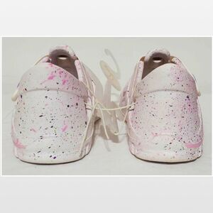 pink & purple paint splatter design, Velcro closure, & rainbows on Velcro straps.