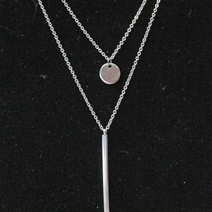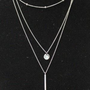 This popular style necklace has three stand...the first is 15 inches long, the second is 20 inch with a small round charm, and the third is 24 inches with a 1 inch drop. It is made from sterling silver 925.