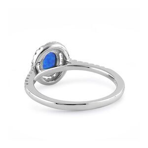 Sterling Silver Blue Lab Opal and Clear CZ Oval Halo Ring